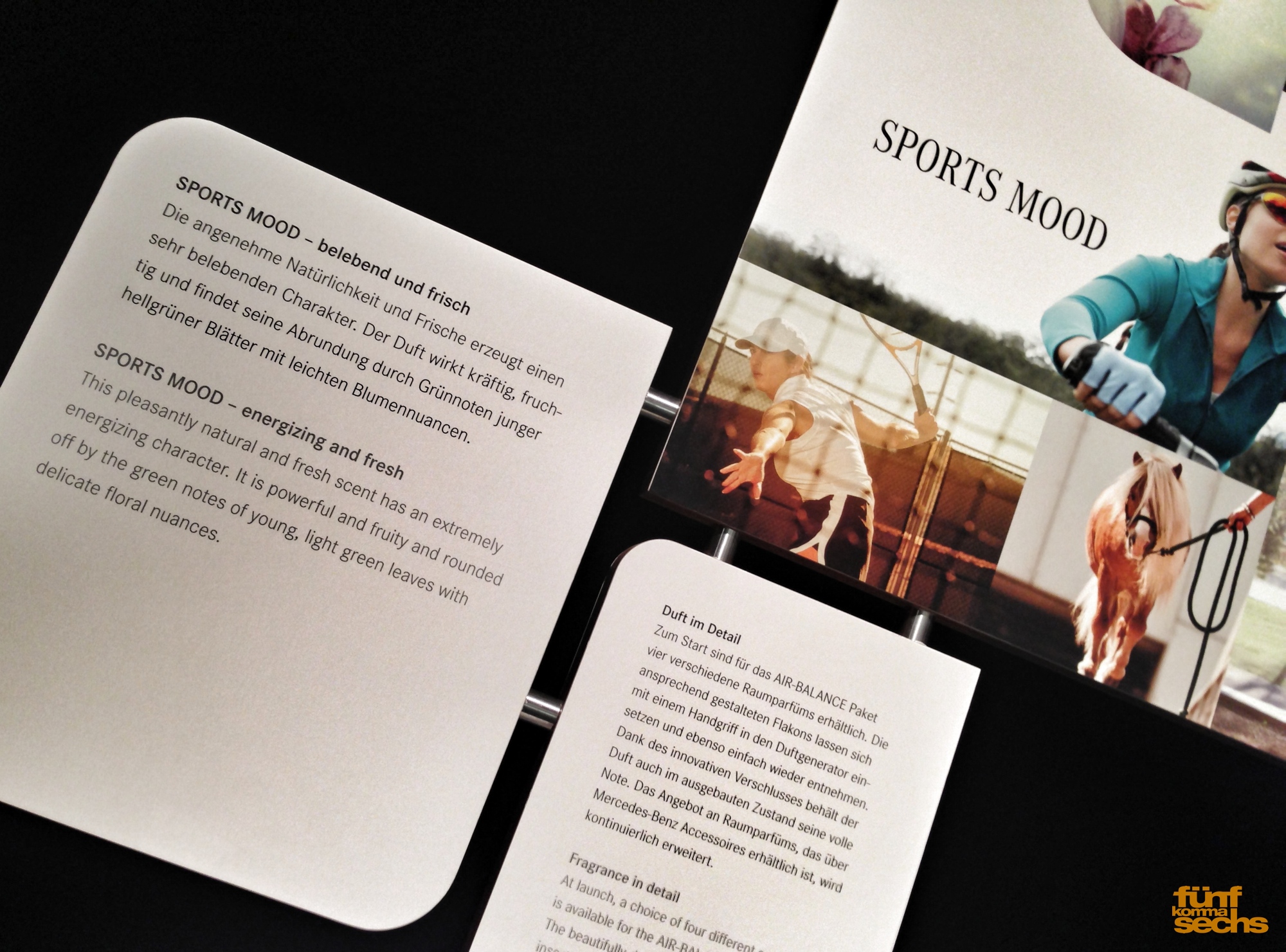 Zur Auswahl stehen hier die Duftnoten „FREESIDE MOOD“, „NIGHTLIFE MOOD“, DOWNTOWN MOOD“ und „SPORTS MOOD“ – wobei serienmässig bei Order des AIR-BALANCE Pakets weltweit der Duft „FREESIDE MOOD“ geliefert wird!