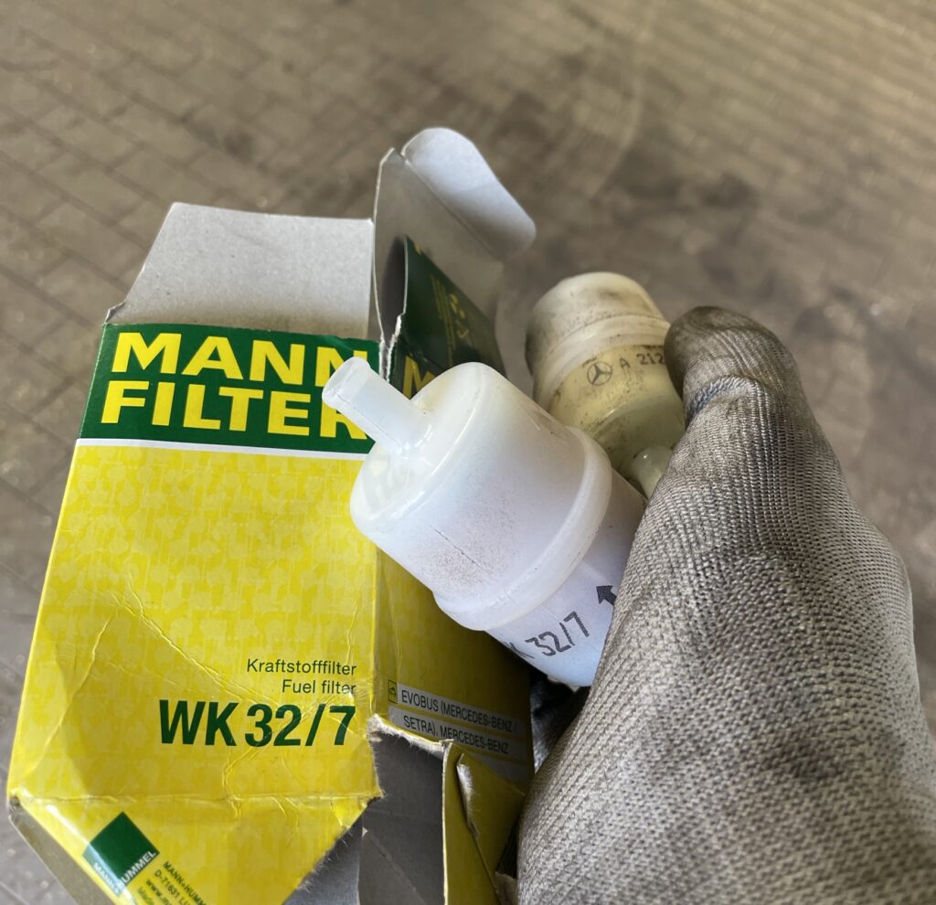 Der Austausch des kleinen AIRMATIC-Luftfilters sollte man vielleicht alle 4 Jahre oder 100.000 Kilometer durchführen. Es handelt sich eigentlich um einen gewöhnlichen kleinen Kraftstofffilter und dieser altert alleine schon durch das Ansaugen von feuchter Außenluft, vom begrenzten Staubaufnahmevermögen ganz zu schweigen. Ein recht simpler Job.